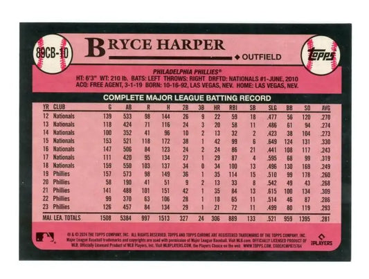 2024 Topps Chrome 1989 Baseball Refractor #89CB-10 Bryce Harper NM-MT Philadelphia Phillies Baseball Card