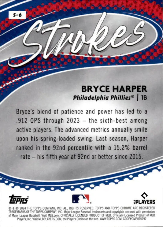 2024 Topps Chrome Strokes Refractor #S-6 Bryce Harper NM-MT Philadelphia Phillies Baseball Card