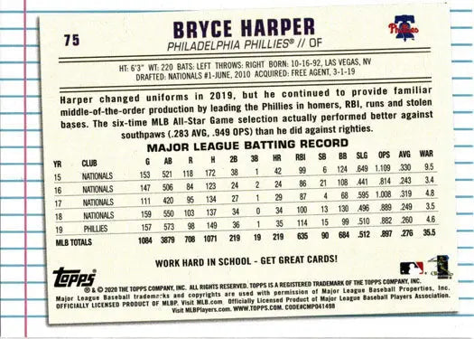 Topps Of The Class Baseball 2020 Base Card 75 Bryce Harper