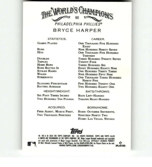 2024 Allen & Ginter #60 Bryce Harper NM-MT Philadelphia Phillies Baseball Card