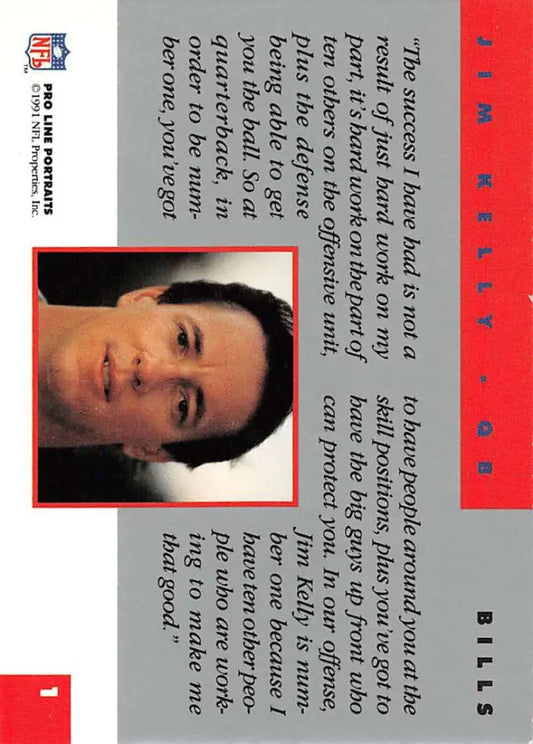 1991 Pro Line Portraits #1 Jim Kelly EX-NM Buffalo Bills Football Card