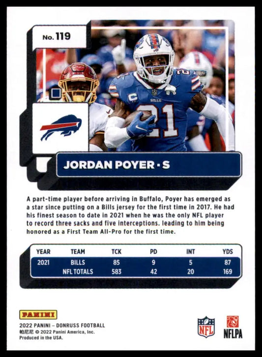 Jordan Poyer 2022 Donruss #119 Buffalo Bills