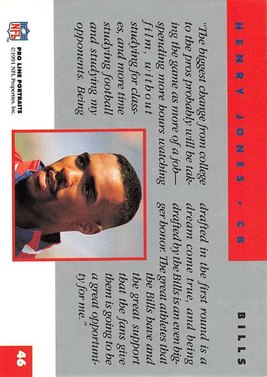 1991 Pro Line Portraits #46 Henry Jones EX-NM RC Rookie Buffalo Bills Football Card
