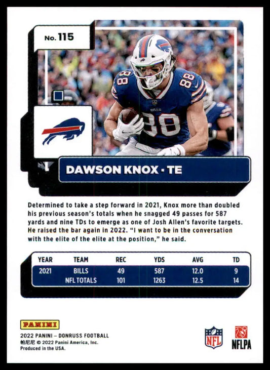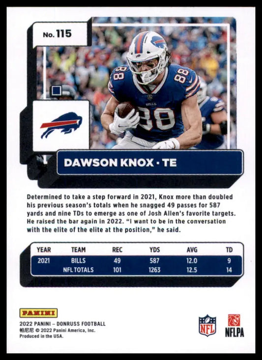 Dawson Knox 2022 Donruss #115 Buffalo Bills
