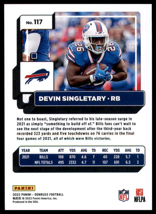 Devin Singletary 2022 Donruss #117 Buffalo Bills