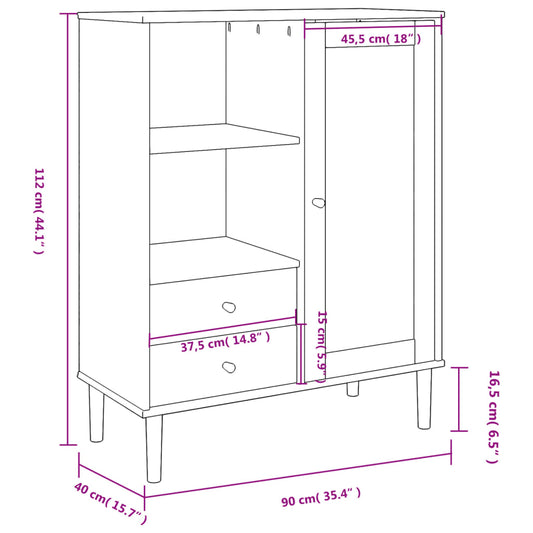 vidaXL Sideboard OLDEN Brown 44.9"x16.9"x28.9" Solid Wood Pine