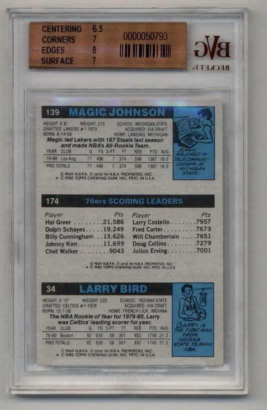 Bird/Erving/Johnson 1980-81 Topps #6 BVG 7 Near Mint 0793Regular price $1,400.00 USDRegular priceUnit price / per-