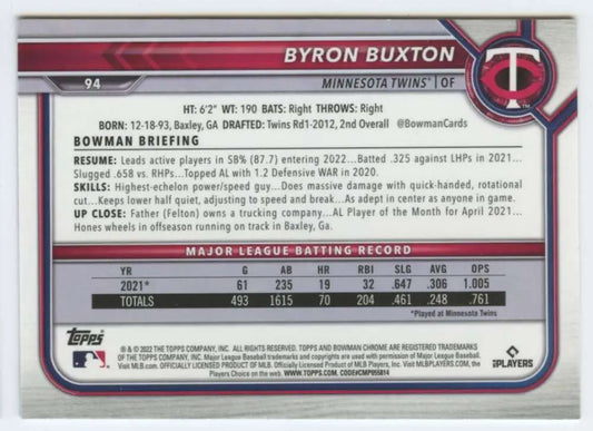 2022 Bowman Chrome #94 Byron Buxton NM-MT Minnesota Twins Baseball Card