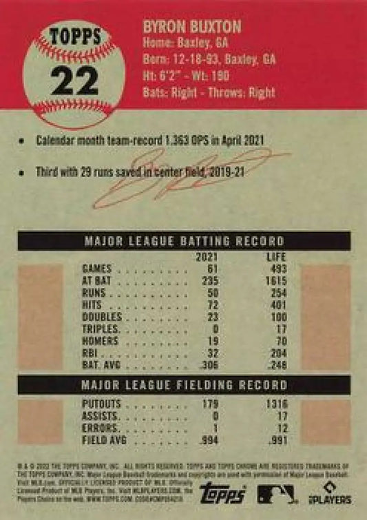 2022 Topps Chrome Platinum Anniversary #22 Byron Buxton NM-MT Minnesota Twins Baseball Card