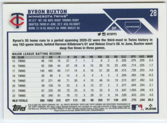 2023 Topps Chrome #28 Byron Buxton NM-MT Minnesota Twins Baseball Card