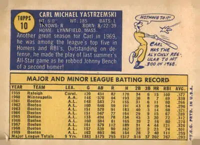 1970 Topps Baseball #10 Carl Yastrzemski - Boston Red Sox