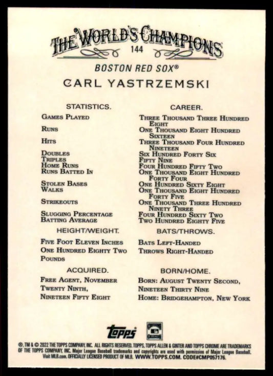 2022 Topps Allen and Ginter Chrome #144 Carl Yastrzemski NM-MT Boston Red Sox Baseball Card