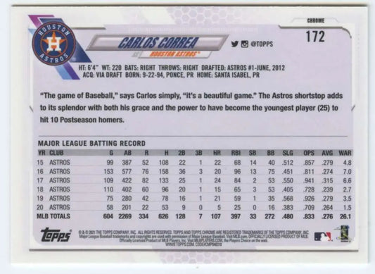 2021 Topps Chrome #172 Carlos Correa NM-MT Houston Astros Baseball Card
