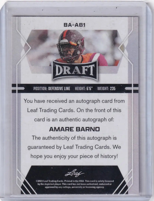 2022 Leaf Draft Auto #AB1 Amar Barno - Carolina Panthers