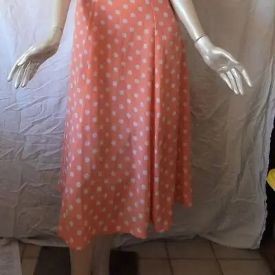 B.T.N. Coral Sleeveless Dress White Polka Dots Retro Summer Style Size M…