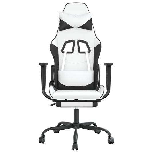 vidaXL Gaming Chair with Footrest White and Black Faux Leather