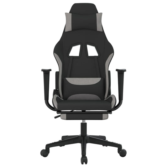 vidaXL Gaming Chair with Footrest Black and Light Gray Fabric