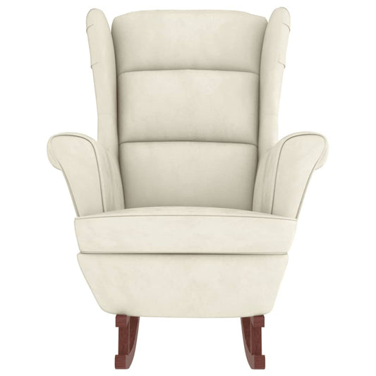 vidaXL Rocking Chair with Solid Wood Rubber Legs Cream Velvet