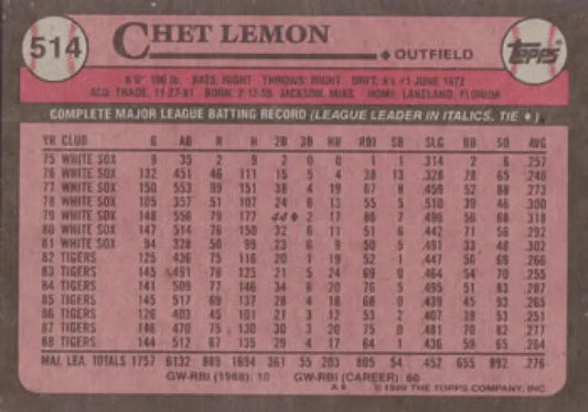1989 Topps #514 Chet Lemon NM-MT Detroit Tigers Baseball Card