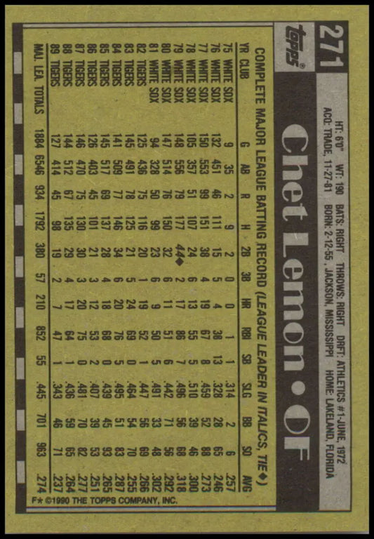 1990 Topps #271 Chet Lemon NM-MT Detroit Tigers Baseball Card