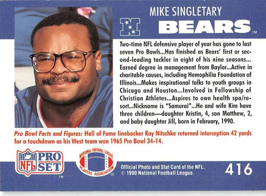 1990 Pro Set #416 Mike Singletary NM-MT Chicago Bears Football Card