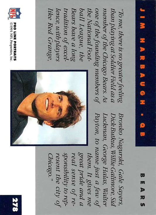 1991 Pro Line Portraits #278 Jim Harbaugh EX-NM Chicago Bears Football Card