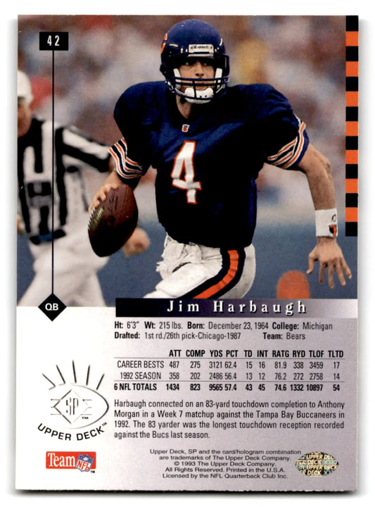 1993 SP Football Jim Harbaugh #42 Chicago Bears