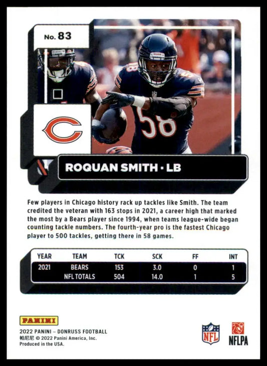 Roquan Smith 2022 Donruss #83 Chicago Bears