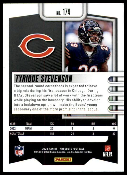 Tyrique Stevenson Rookie 2023 Panini Absolute Retail #174 Chicago Bears