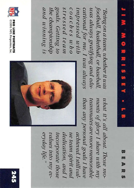1991 Pro Line Portraits #245 Jim Morrissey EX-NM RC Rookie Chicago Bears Football Card