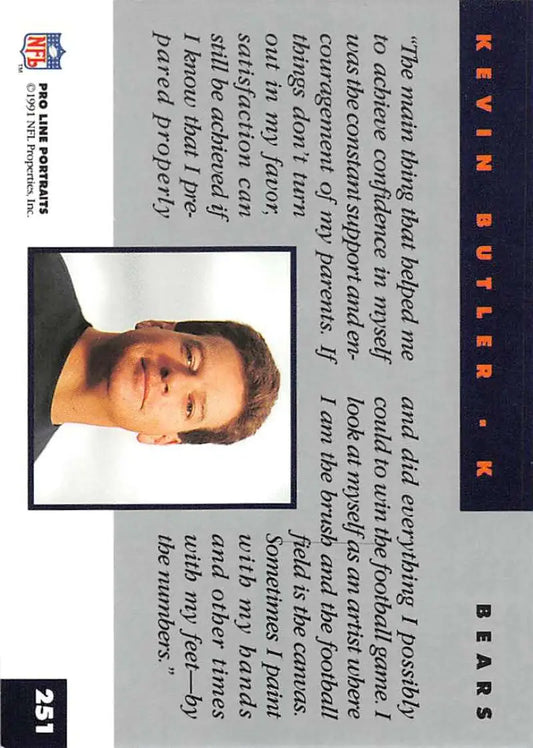 1991 Pro Line Portraits #251 Kevin Butler EX-NM Chicago Bears Football Card