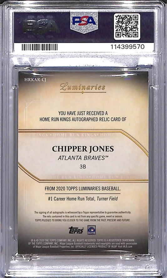 2020 Topps Luminaries Home Run Kings Relics #HRKAR-CJ Chipper Jones PSA 10 GEM MINT MEM Auto 13/15 Atlanta Braves Baseball Card