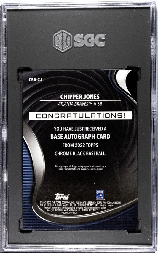 2022 Topps Chrome Black Orange #CBA-CJ Chipper Jones SGC 10 Gem Auto 6/25 Atlanta Braves Baseball Card