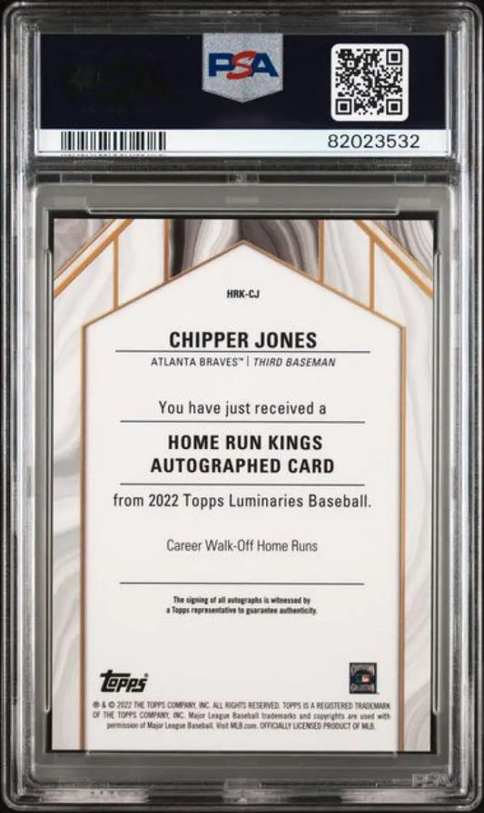 2022 Topps Luminaries #HRKCJ Chipper Jones PSA 9 MINT Auto 9/10 Atlanta Braves Baseball Card