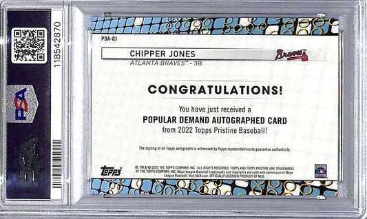 2022 Topps Pristine Popular Demand #PDA-CJ Chipper Jones PSA 10 GEM MINT Auto Atlanta Braves