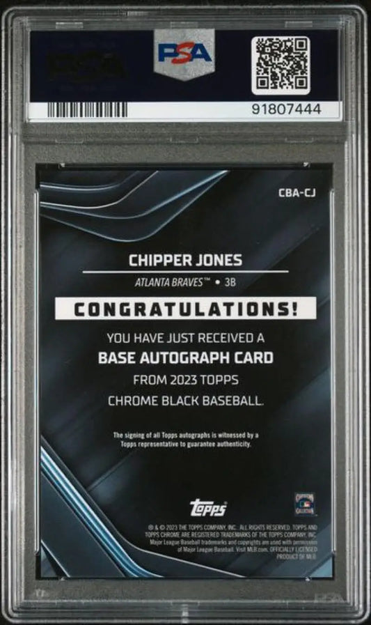 2023 Topps Chrome Black #CBA-CJ Chipper Jones PSA 10 GEM MINT Auto Atlanta Braves Baseball Card