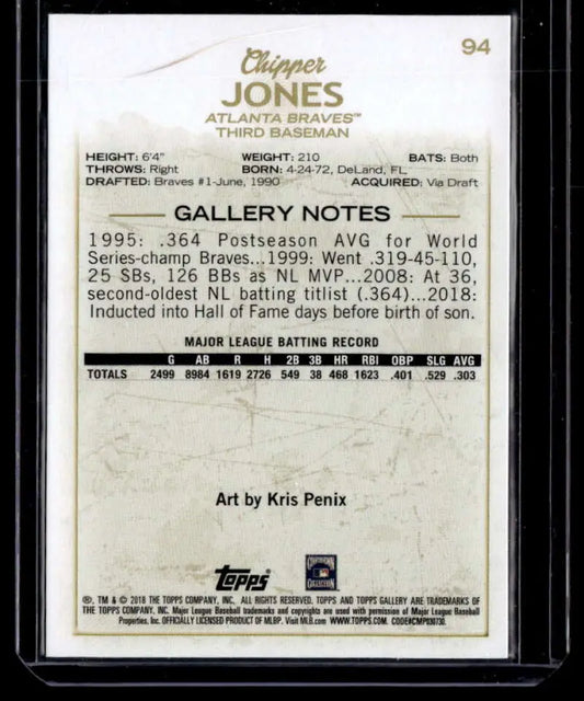 2018 Topps Gallery #94 Chipper Jones Wood NM-MT