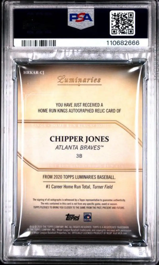 2020 Topps Luminaries Home Run Kings Relics #HRKAR-CJ Chipper Jones PSA 10 GEM MINT MEM Auto 13/15 Atlanta Braves Baseball Card