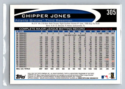 2012 Topps #305a Chipper Jones Atlanta Braves