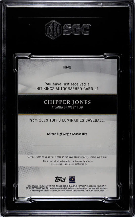 2019 Topps Luminaries Hit Kings Red #HK-CJ Chipper Jones SGC 9 MINT Auto 3/10 Atlanta Braves Baseball Card