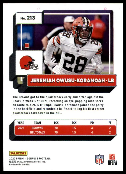 Jeremiah Owusu-Koramoah 2022 Donruss #213 Cleveland Browns