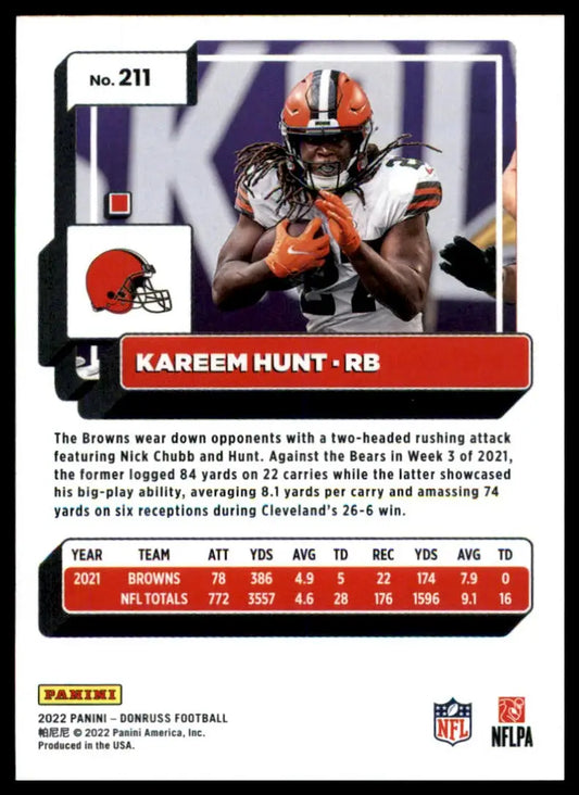 Kareem Hunt 2022 Donruss #211 Cleveland Browns
