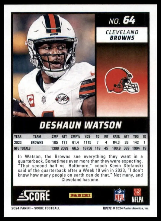 2024 Score Deshaun Watson #64 Cleveland Browns Football Card NFL Sports