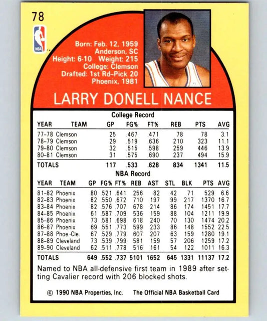 1990-91 Hoops #78 Larry Nance NM-MT Cleveland Cavaliers Basketball Card