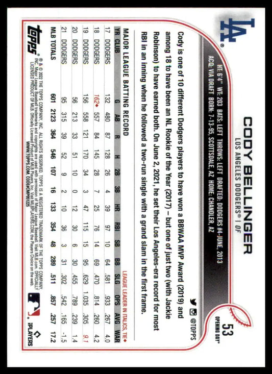 Cody Bellinger 2022 Topps Opening Day #53 Los Angeles Dodgers