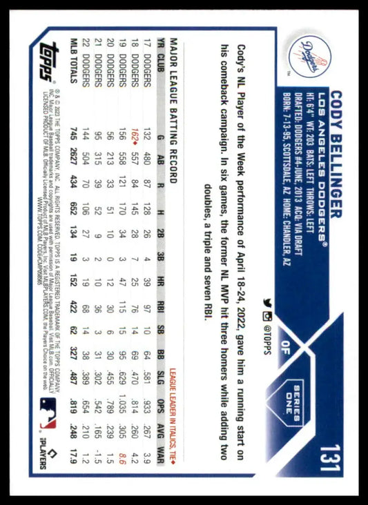 2023 Topps #131 Cody Bellinger NM-MT Los Angeles Dodgers Baseball Card