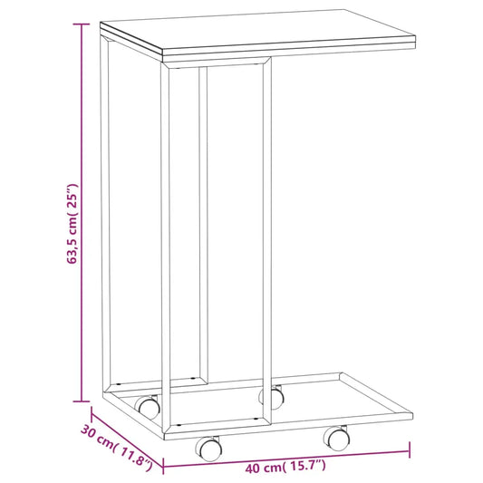 vidaXL Side Table with Wheels Black 21.7"x14.2"x25" Engineered Wood