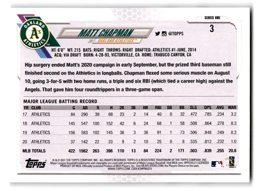 2021 Topps - Green Jersey #3 Matt Chapman Athletics