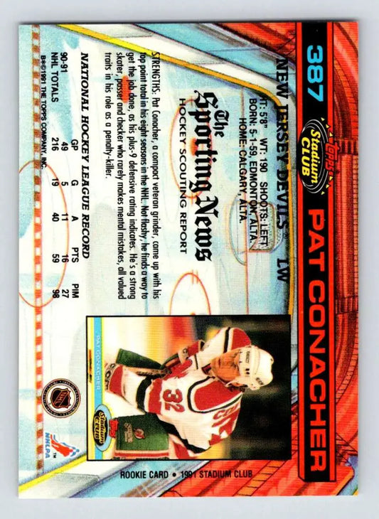 1991-92 Topps Stadium Club #387 Pat Conacher NM-MT New Jersey Devils Hockey Card