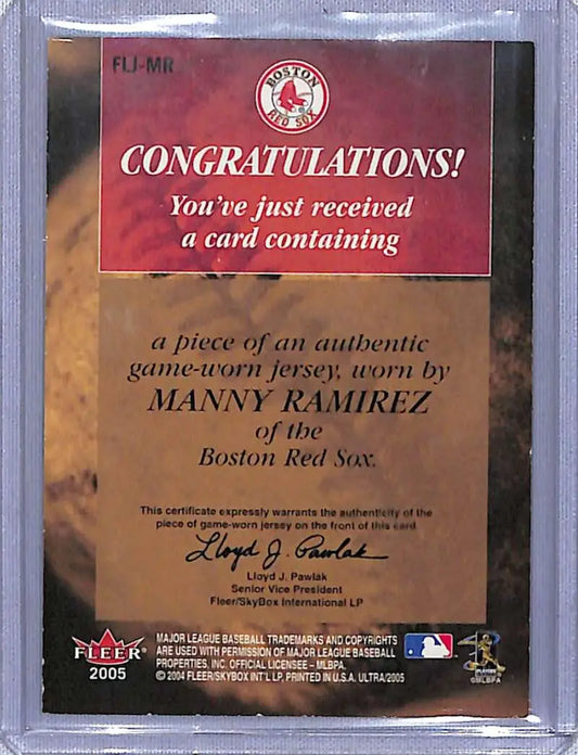 2005 Ultra #FLJ-MR Manny Ramirez Follow the Leader Jersey Copper NM-MT Baseball Card